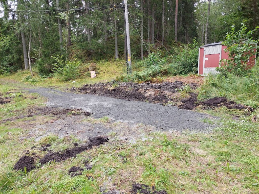 Nu är stigen / vägen vid transformatorstationen vid Kuggviken fixad. Vi lade markduk, grävde ur diket och dräneringar samt körde ut en hel del grus. Nu får marken sätta sig och torka ur så får vi se om det behöver bättras på efteråt.